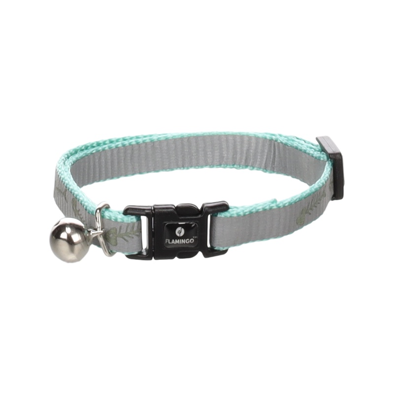Obojek z odolného nylonu má po celé délce široký reflexní pás, který zvyšuje bezpečí kočky za snížené viditelnosti. Zapíná se na plastovou přezku s bezpečnostním zámkem. Délku lze nastavit v rozsahu 20–34 cm. K obojku je připnutá rolnička, která při pohybu jemně zvoní a varuje tak potenciální kořist.