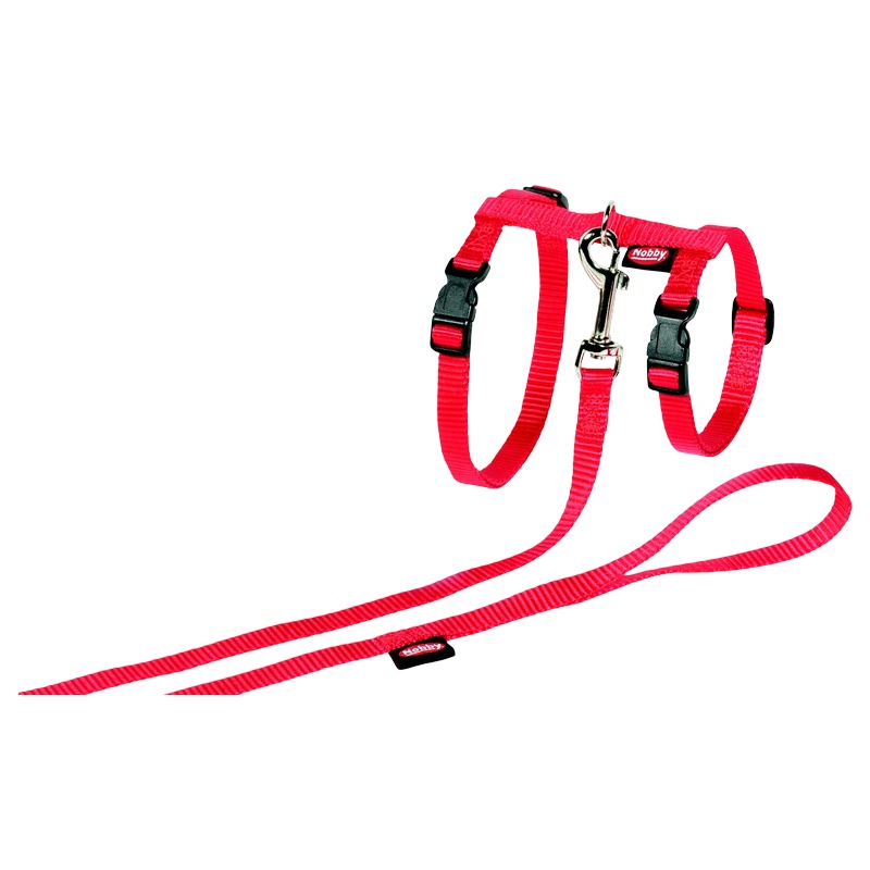 Červený postroj pro kočky s vodítkem z nylonu ve velikosti XL.