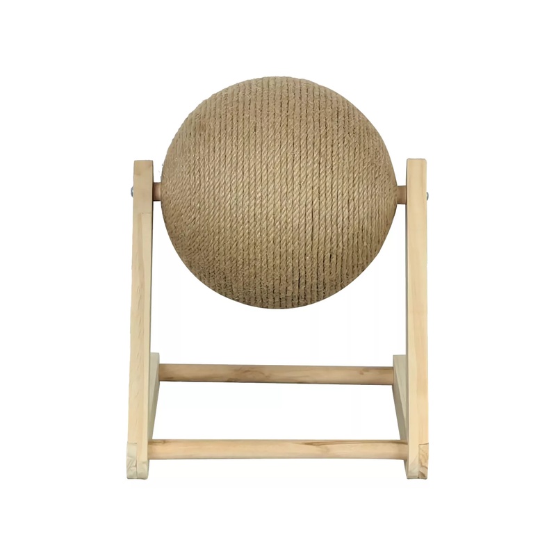 Škrabadlo Quapas! Ball se díky svým kompaktním rozměrům hodí i do menších prostor. Má stabilní dřevěnou základnu a otočnou škrabací kouli ovinutou odolným jutovým provazem. Skvěle poslouží k broušení drápků i k aktivní hře.