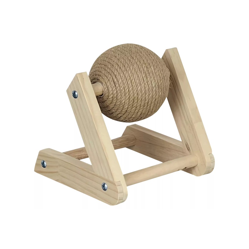 Škrabadlo Quapas! Ball se díky svým kompaktním rozměrům hodí i do menších prostor. Má stabilní dřevěnou základnu a otočnou škrabací kouli ovinutou odolným jutovým provazem. Skvěle poslouží k broušení drápků i k aktivní hře.