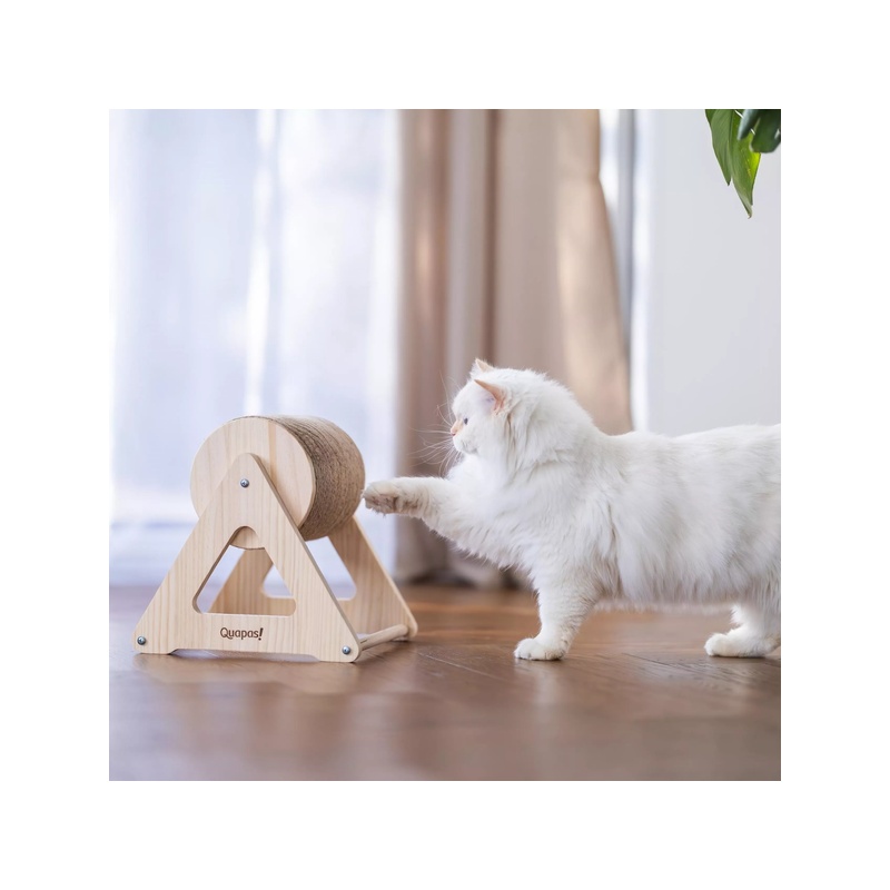 Škrabadlo Quapas! Cylinder se díky svým kompaktním rozměrům hodí i do menších prostor. Má stabilní dřevěnou základnu a otočný škrabací válec ovinutý odolným jutovým provazem. Skvěle poslouží k broušení drápků i k aktivní hře.