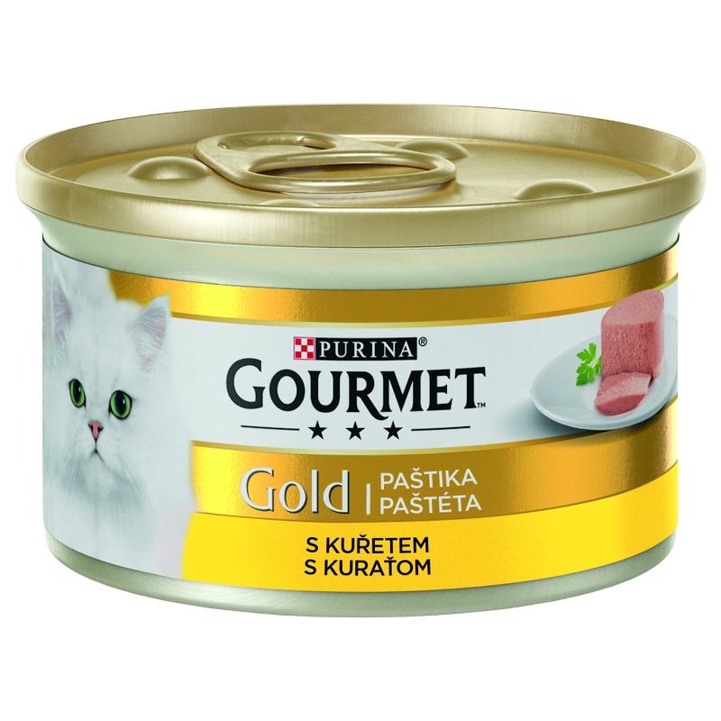 GOURMET Gold jemná paštika s kuřecím svádí Vaši kočku jemnou sametovou chutí.