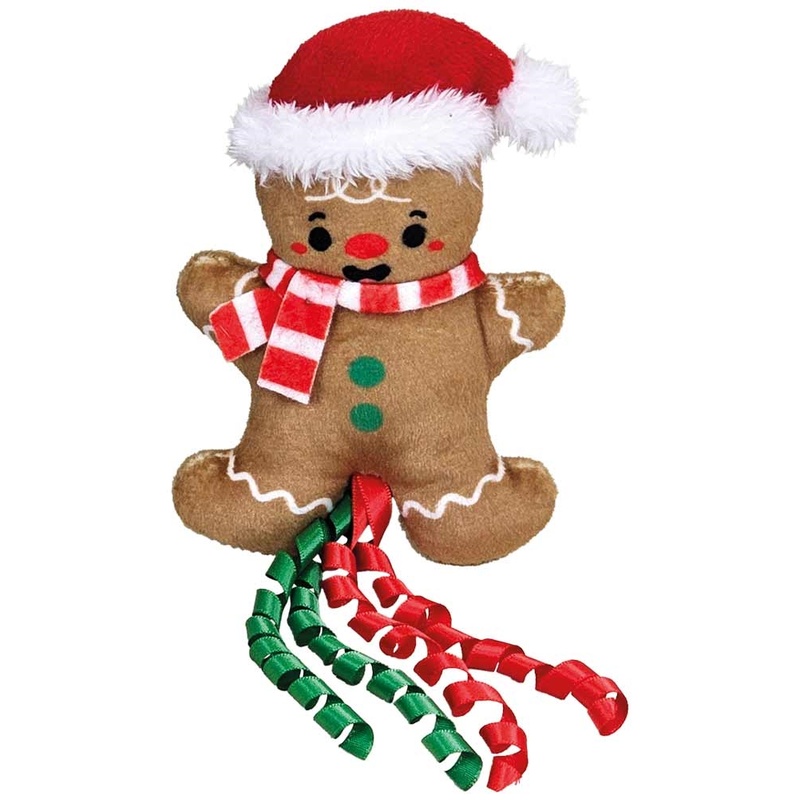 Vánoční hračka pro kočky má podobu perníkového panáčka s vánoční čepičkou a šálou. Perníček je vyrobený z hebkého plyše doplněného barevnými stužkami a obsahuje catnip (šantu kočičí), jejíž vůně povzbuzuje ke hře až 70 % koček.