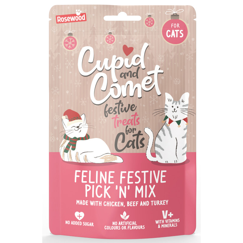 Vánoční pamlsky s kuřecím, krůtím a hovězím masem jsou ideálním dárkem pro dospělé kočky všech plemen. Pamlsky jsou obohacené vitamíny a minerály a neobsahují žádný přidaný cukr ani umělá barviva a příchuti.