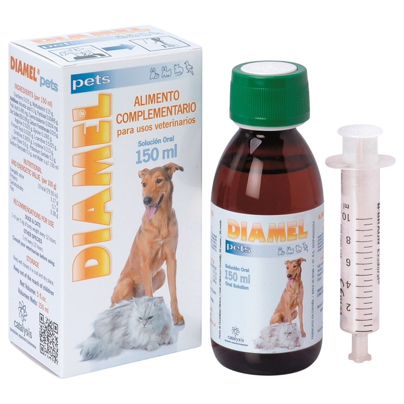 DIAMEL Pets obsahuje aminokyseliny, vitaminy a stopové prvky v unikátní kombinaci s cílem normalizovat hladinu glukózy, cholesterolu a urátů v krvi. Navíc obsahuje antioxidanty, které chrání buňky před poškozením. Tři složky – kyseliny listová, vitamin B12 a vitamin B6 brání vzniku homocysteinu, redukují jeho koncentraci v krvi a tím snižují riziko kardiovaskulárních a degenerativních chorob jako např. diabetická retinopatie. Diabetes melitus typu II zapříčiňuje vznik cévních poruch spojených se zvýšenou hladinou homocysteinu a to je rizikový faktor pro následné další cévní komplikace a diabetické retinopatie.