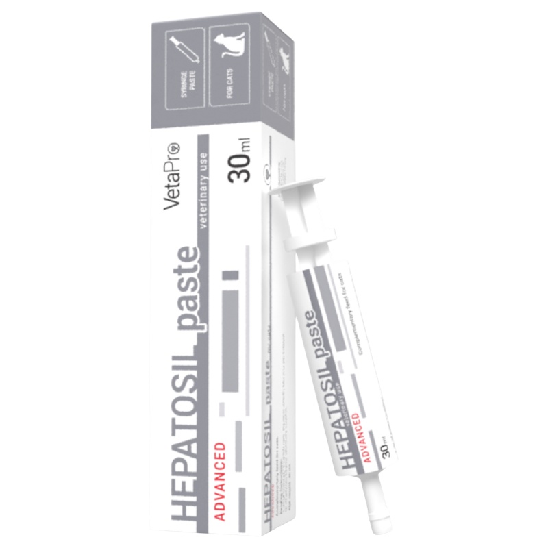 Hepatosil Advance paste je doplňkové krmivo pro kočky, které pomáhá podporovat funkci jater v případě selhání nebo dysfunkce. Regeneruje a chrání hepatocyty, urychluje regeneraci jater a obnovu jejich normální funkce.