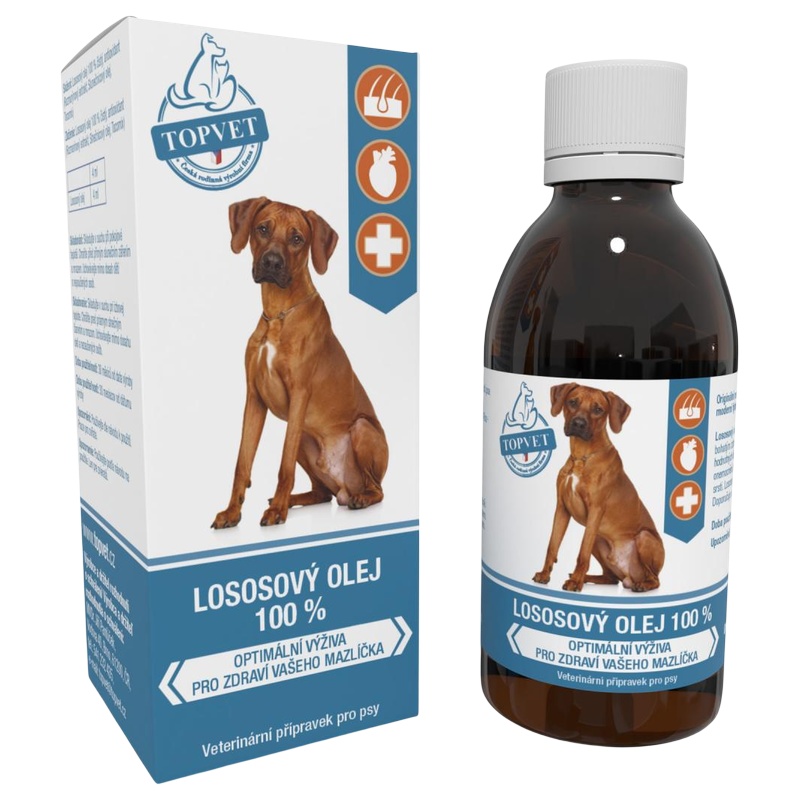 Veterinární přípravek pro psy – lososový olej.