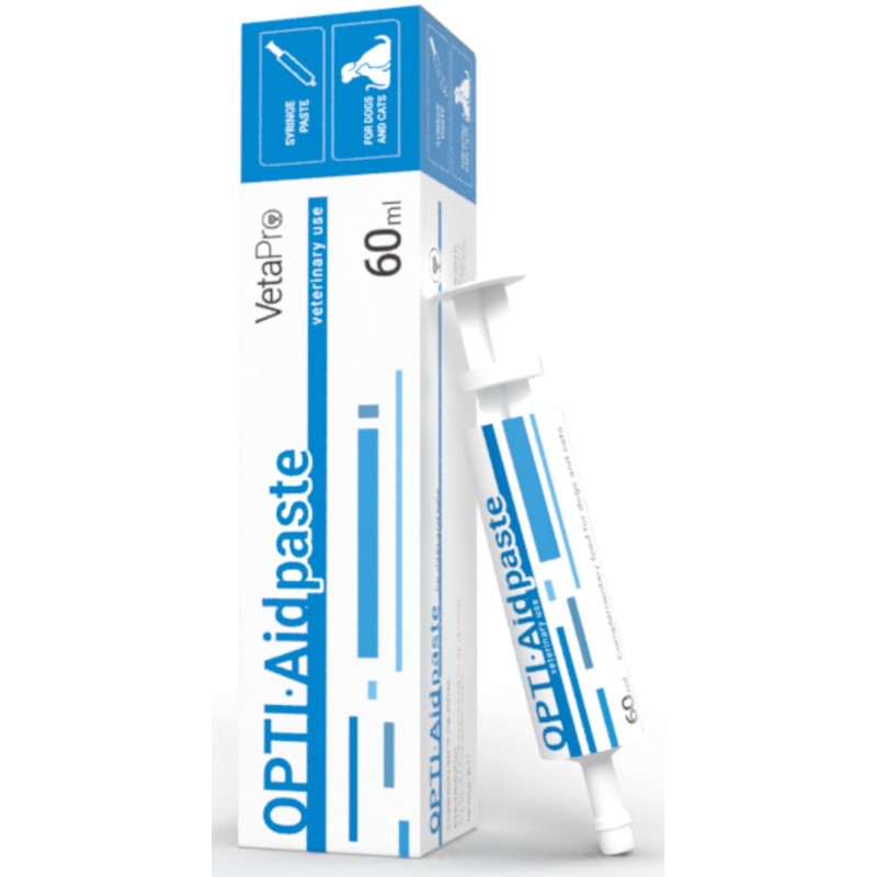 Opti-Aid Paste je doplňkové krmivo pro psy a kočky ve formě gelové pasty ve vytlačovací stříkačce. Pasta je výživový a energetický doplněk každodenní stravy zvířat v rekonvalescenci nebo ve fázi nedostatku energie. Pomáhá při rekonvalescenci psů nebo koček při nedostatku vitamínů.