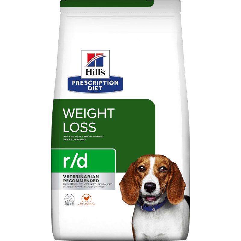 Hill's PRESCRIPTION DIET r/d krmivo pro psy s kuřetem je kompletní dietetické krmivo pro snížení nadměrné tělesné hmotnosti a u dospělých psů. Toto krmivo má nízkou hustotu energie.