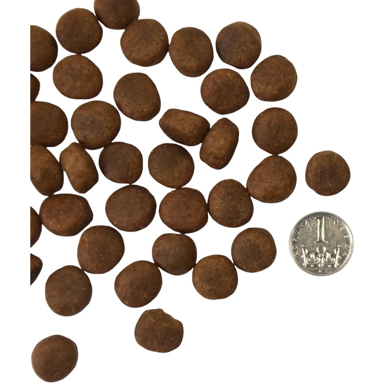 hrubý protein 26 %, hrubý tuk 12 %, hrubá vláknina 2,5 %, hrubý popel 7,5 %, vlhkost 9 %, vápník 1,1 %, fosfor 0,8 %, omega-3 mastné kyseliny 0,4 %, omega-6 mastné kyseliny 1,4 %.