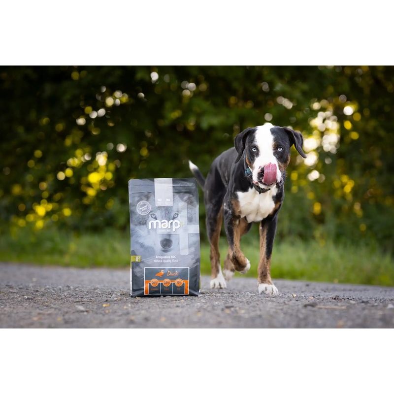 Monoproteinové grain-free krmivo Marp Natural Plus Duck je založené na kachní moučce a hovězím tuku, takže je ideální pro psy alergické na drůbež a obiloviny. Receptura vyniká jednoduchým a funkčním složením z kvalitních surovin od lokálních dodavatelů. Granule jsou vhodné pro štěňata velkých plemen a dospělé psy všech plemen. Batáty jsou výborným a lehce stravitelným zdrojem sacharidů. Složení obohacené o lněné semínko působí blahodárně na kůži a srst. Sušená čekanka bohatá na fruktooligosacharidy podporuje zažívání a kloubní výživa mobilitu.