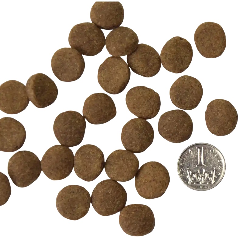 hrubý protein 25 %, hrubý tuk 7 %, hrubá vláknina 2,5 %, hrubý popel 8,5 %, vlhkost 9 %, vápník 1,8 %, fosfor 1,2 %, omega-3 mastné kyseliny 0,3 %, omega-6 mastné kyseliny 0,9 %.