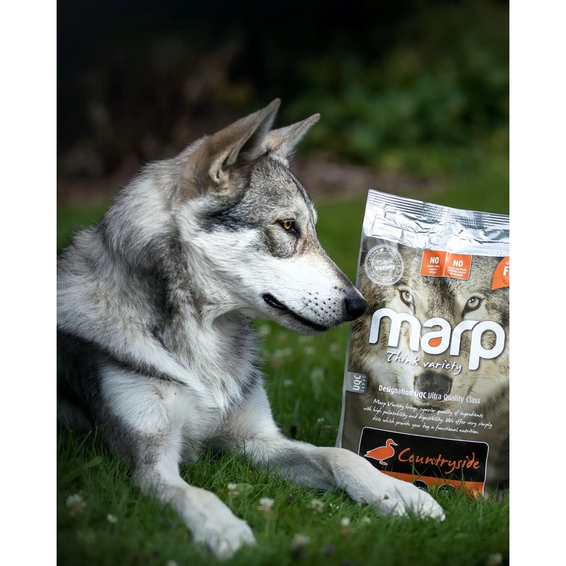 Monoproteinové krmivo Marp Variety Countryside je založené na kombinaci sušené a čerstvé kachny doplněné hnědou i klasickou rýží pro snadnou stravitelnost. Bezlepková receptura vyniká jednoduchým a funkčním složením z kvalitních surovin od lokálních dodavatelů. Granule jsou ideální pro dospělé psy všech plemen a štěňata středně velkých a velkých plemen včetně jedinců s citlivým zažíváním a potravními alergiemi.
