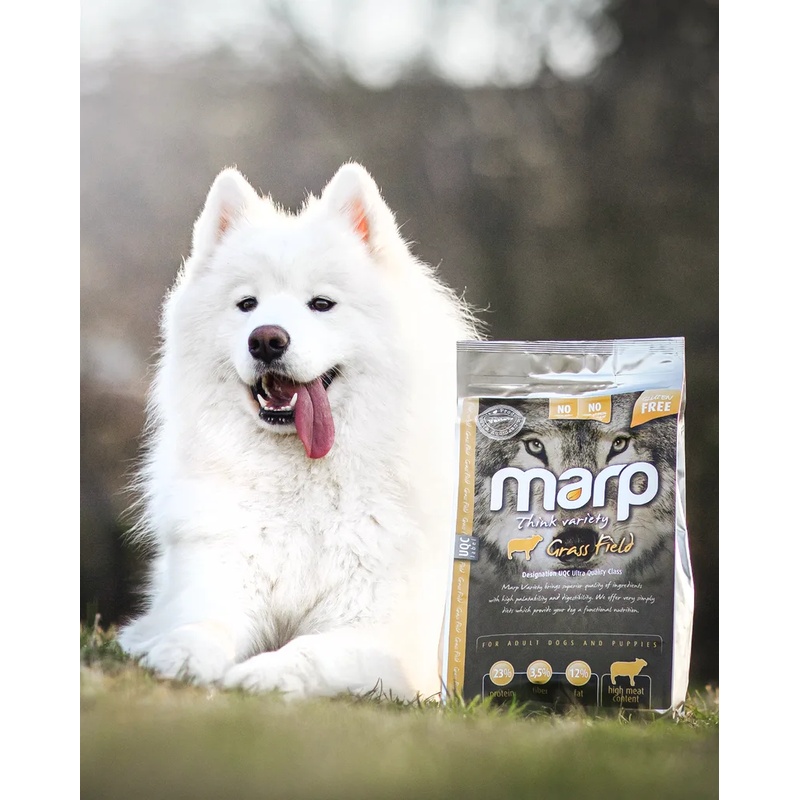Monoproteinové krmivo Marp Variety Grass Field je založené na kombinaci sušeného a čerstvého jehněčího masa doplněného hnědou i klasickou rýží pro snadnou stravitelnost. Bezlepková receptura vyniká jednoduchým a funkčním složením z kvalitních surovin od lokálních dodavatelů. Granule jsou ideální pro dospělé psy všech plemen a štěňata středně velkých a velkých plemen včetně jedinců s citlivým zažíváním a potravními alergiemi.