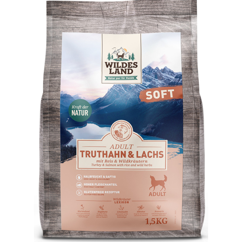 Granule pro psy: Wildes Land Soft Adult Turkey & Salmon with Rice and Wild Herbs 1,5 kg
