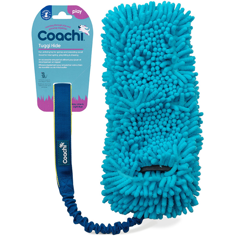 Hračka Coachi Tuggi Hide je mop s plnitelnou kapsou a speciální elastickou rukojetí určený k přetahování. Hračka je vyrobena z velmi odolných, a přitom lehkých materiálů šetrných k psím zubům. Mop je opatřen skrytou kapsou, do níž lze vložit jako odměnu nebo motivaci pamlsky či jiné předměty. Dlouhá polstrovaná rukojeť usnadňuje manipulaci a pružný popruh šetří krk vašeho psa i vaši paži. Hračku lze nejlépe využít při trénování poslušnosti, agility, při nácviku odložení, odvolání apod. Je ideální pomůckou k upoutání pozornosti psa, chcete-li jej například odnaučit nežádoucímu chování nebo zlepšit jeho přivolání.