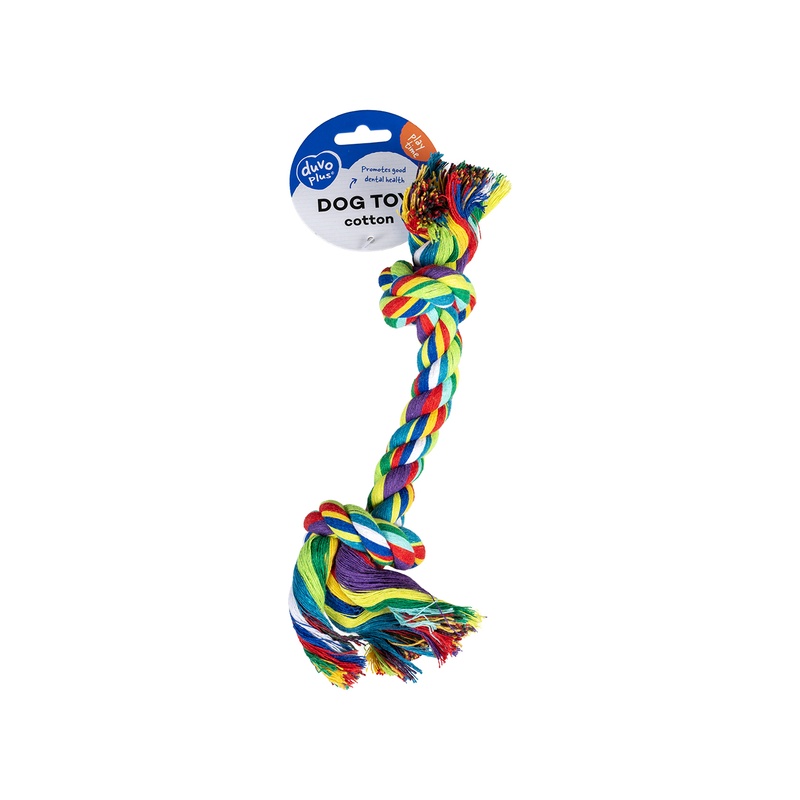 Bavlněné přetahovadlo pro psy je spletené z pevných barevných provázků a má uzly pro lepší úchop při hře. Hodí se pro přetahování, aportování i kousání. Bavlněné provázky během hry přirozeně čistí chrup a přispívají tak ke zdraví zubů a dásní.