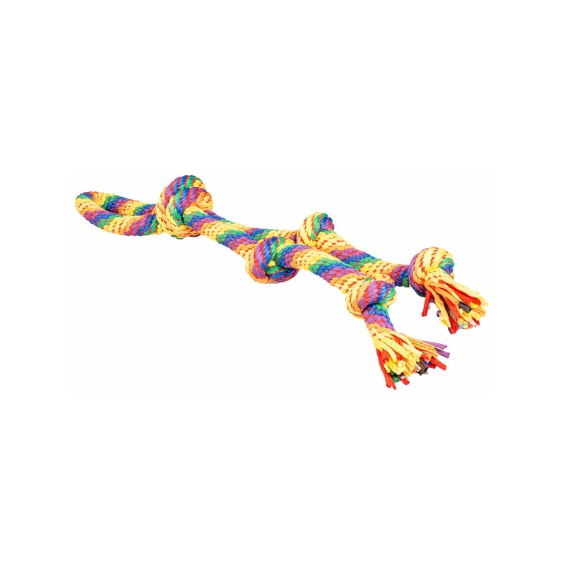 Odolné a barevné přetahovadlo pro psy je spletené z pružných pruhů látky připomínající legínovinu. Na jedné straně je zakončené okem pro snadné uchopení. Díky elastickému materiálu a uzlům je ideální pro přetahování i aportování. Kvalitní zpracování zajišťuje dlouhou životnost hračky.
