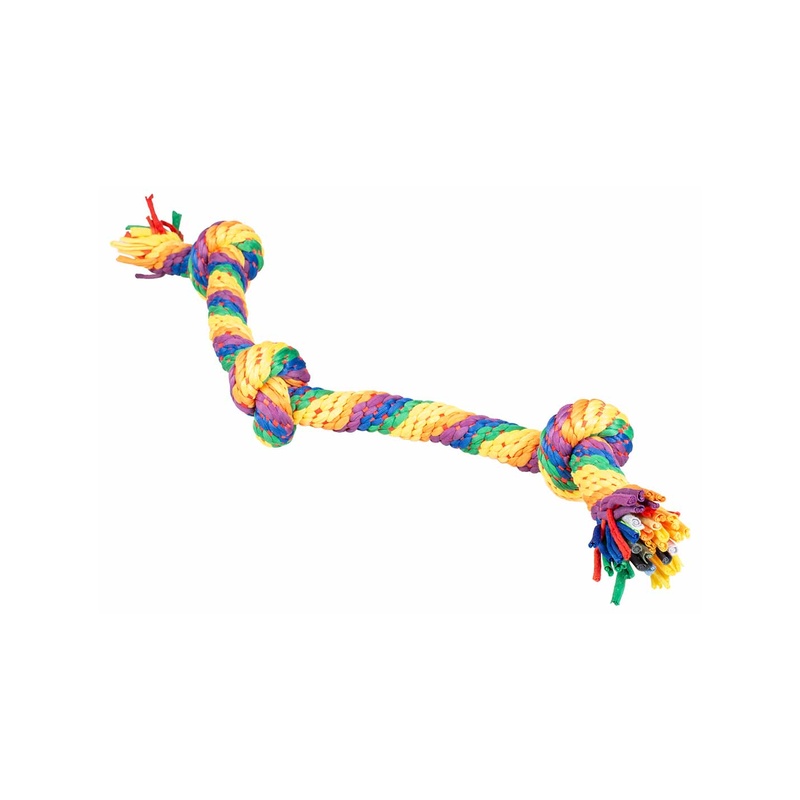 Odolné a barevné přetahovadlo pro psy je spletené z pružných pruhů látky připomínající legínovinu. Hračka je elastická, což zvyšuje zábavu při přetahování a aportování. Uzly ve hře poskytují lepší úchop a pevnost a kvalitní materiál zajišťuje dlouhou životnost hračky.