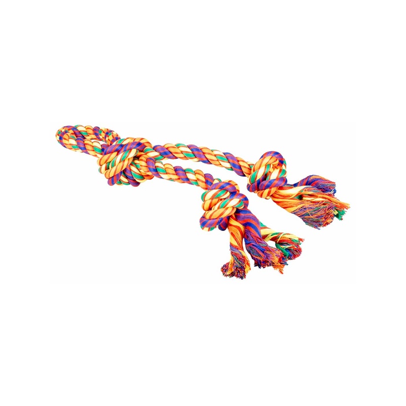 Odolné bavlněné přetahovadlo pro psy je spletené z pevných barevných provázků s uzly a na jedné straně je zakončené okem pro snadné uchopení. Hodí se pro přetahování, aportování i kousání. Bavlněné provázky během hry přirozeně čistí chrup a přispívají tak ke zdraví zubů a dásní.