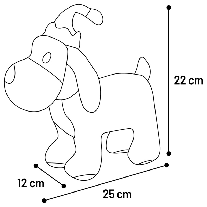 Hračka pro psy ve tvaru pejska s barevnou vánoční čepičkou je vyrobena z plyše s manšestrovou úpravou. Pro větší potěšení ze hry obsahuje pes pískátko.