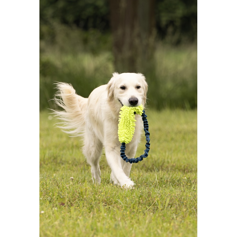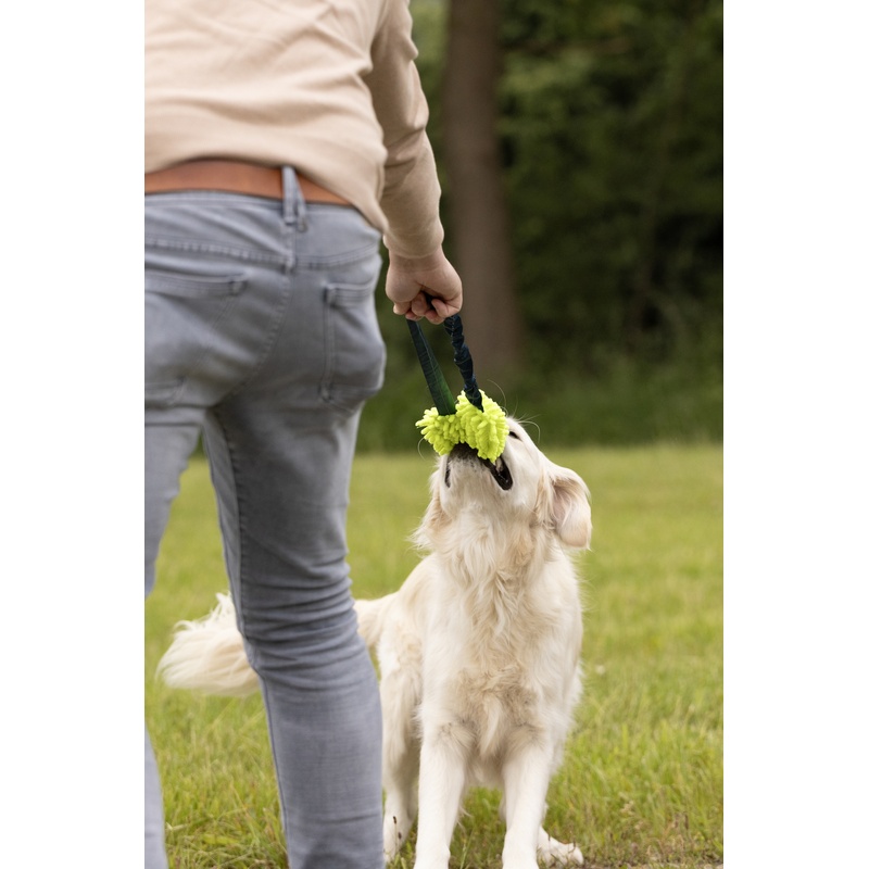 Střapatá hračka pro psy je určená pro aportování i přetahování. Povrch z žinylkového plyše a elastická rukojeť podporují aktivní hru a trénink.