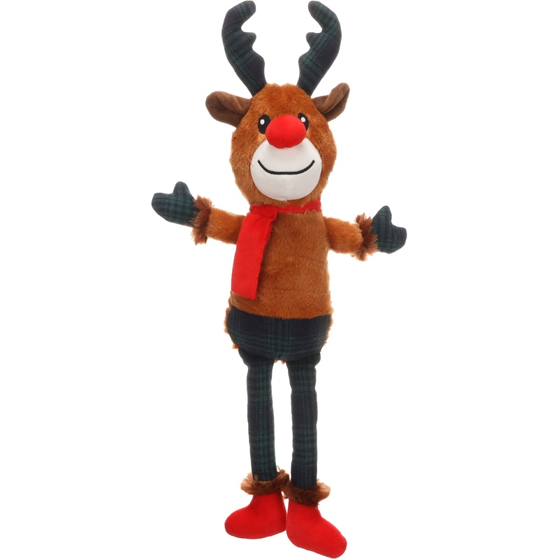 Vánoční hračka pro psy ve tvaru soba s šálou kolem krku je vyrobena z hebkého plyše. Pro větší potěšení ze hry obsahuje sob pískátko.