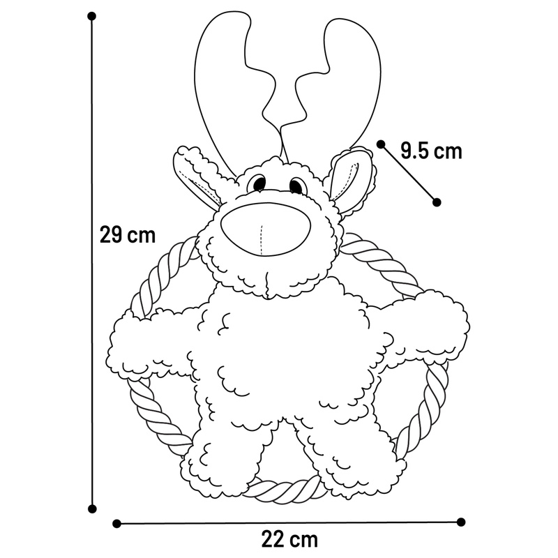 Vánoční hračka pro psy ve tvaru soba je vyrobena z měkkého plyše a má kruhový provaz. Je vhodná na přetahování i aportování. Pro větší potěšení ze hry obsahuje sob pískátko.