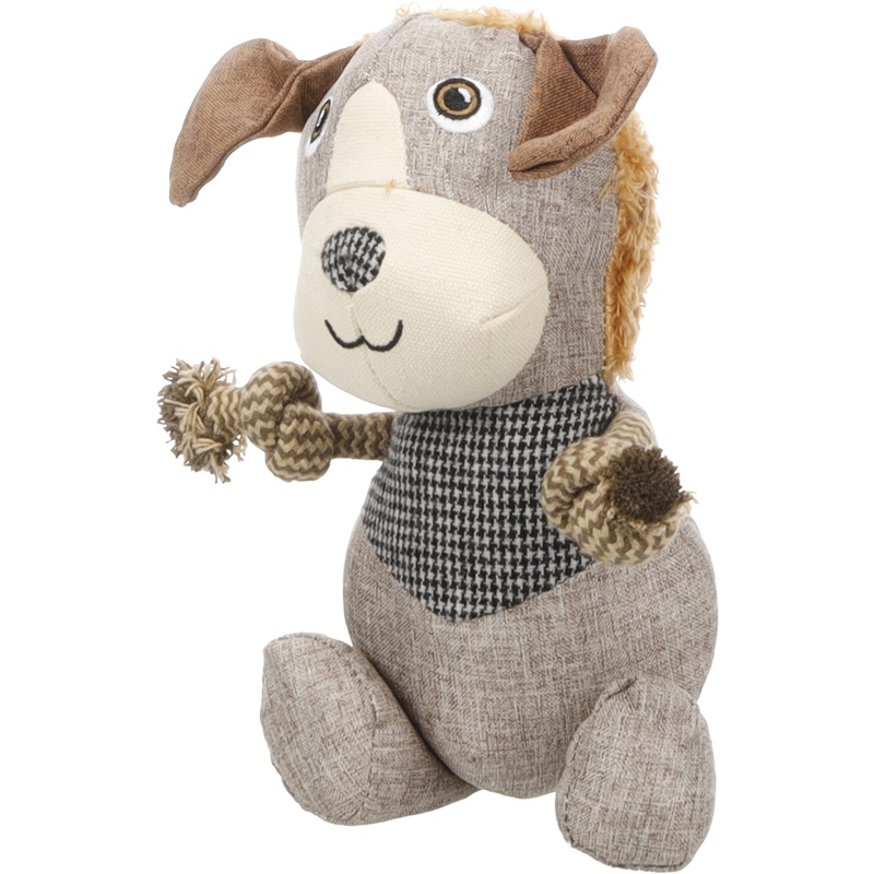 Roztomilý pejsek z řady Libar je ideální pro přetahování i mazlení. Odolný materiál, různorodé textury (plátno, tvíd, plyš), vestavěné zauzlované lano a skryté pískátko motivují psa ke společné i samostatné hře. Hračka je vhodná pro psy všech velikostí.