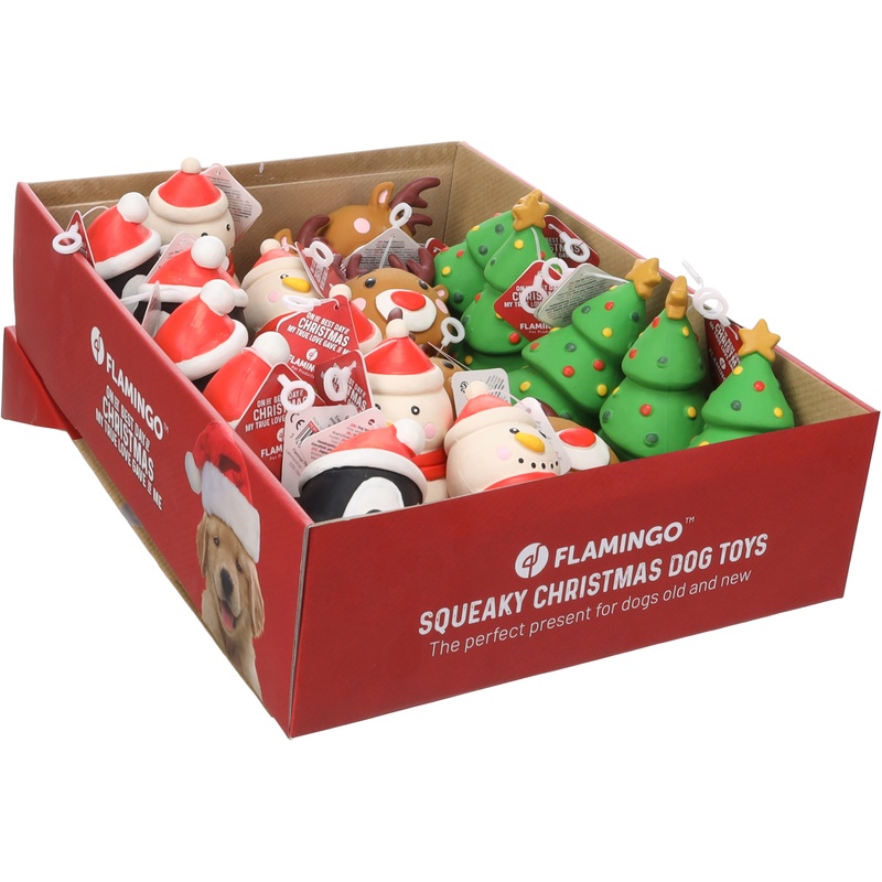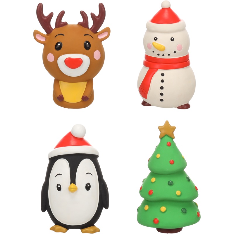 Hračka pro psy ve tvaru soba, sněhuláka, tučňáka nebo vánočního stromečku je vyrobena z latexu. Pro větší potěšení ze hry obsahuje pískátko.