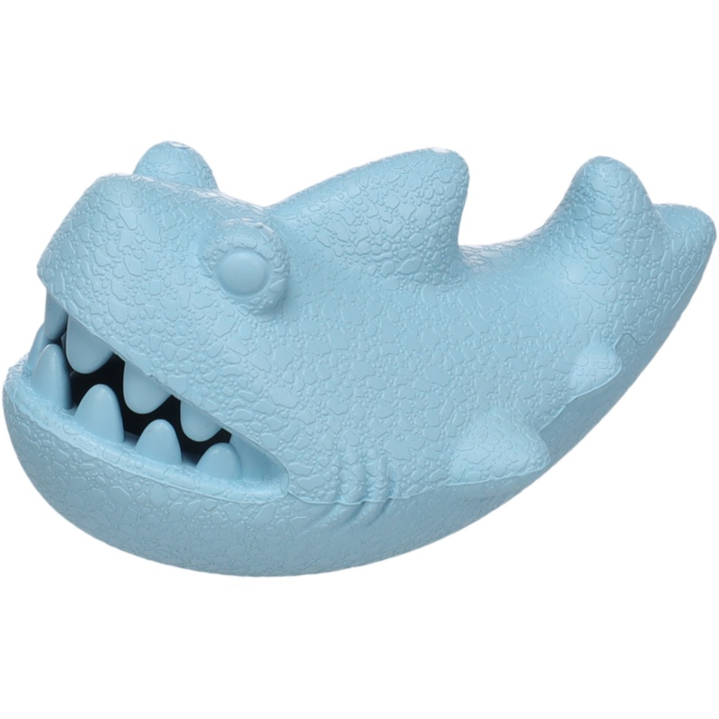 Gumová hračka pro psy ve tvaru žraloka je vhodná pro kousání a plnění pamlsky nebo granulemi. Podporuje aktivní hru a zabaví psa na delší dobu.