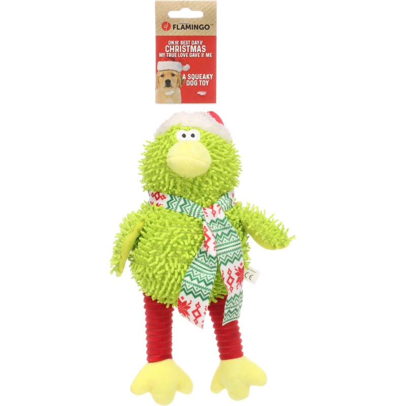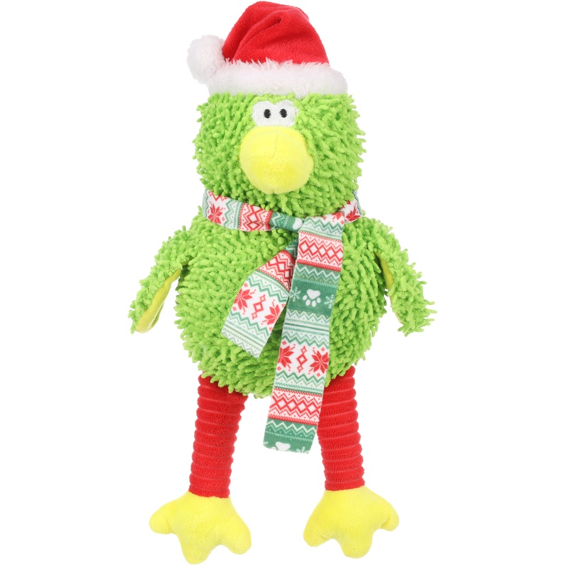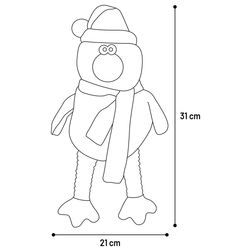 Hračka pro psy ve tvaru ptáka s vánoční čepičkou a šálou je vyrobena z plyše s žinylkovou a manšestrovou úpravou. Pro větší potěšení ze hry obsahuje pták pískátko.