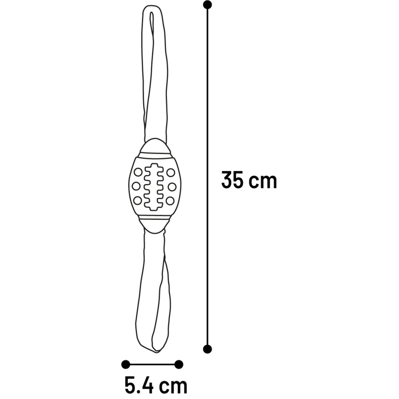169,00 KčHračka pro psy ve tvaru ragbyového míče je vyrobená z termoplastické gumy (TPR) s bambusovým vláknem. Při kousání masíruje dásně a pomáhá omezovat tvorbu zubního plaku, čímž přispívá k přirozené péči o chrup. Úchyty na obou koncích hračky slouží k interaktivní hře a přetahování. Prohlubně v míčku lze naplnit pamlsky nebo jedlou pastou a zvýšit tak motivaci ke hře.