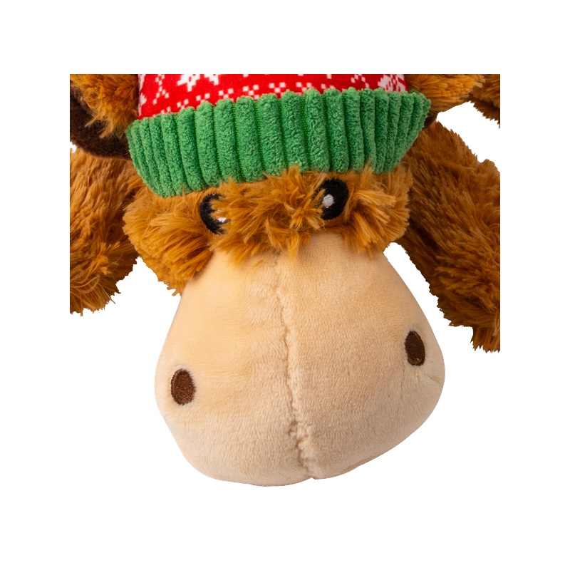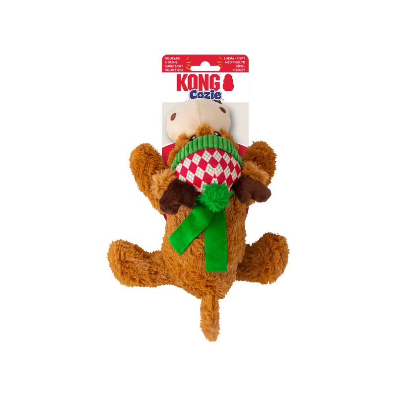Vánoční sob KONG Holiday Cozie Reindeer je měkká a hebká plyšová hračka ideální pro mazlení i něžné hrátky. Díky dvojité vrstvě materiálu je odolnější a snese i jemné kousání. Zabudované pískátko vybízí k aktivní hře a udržuje pozornost psa.