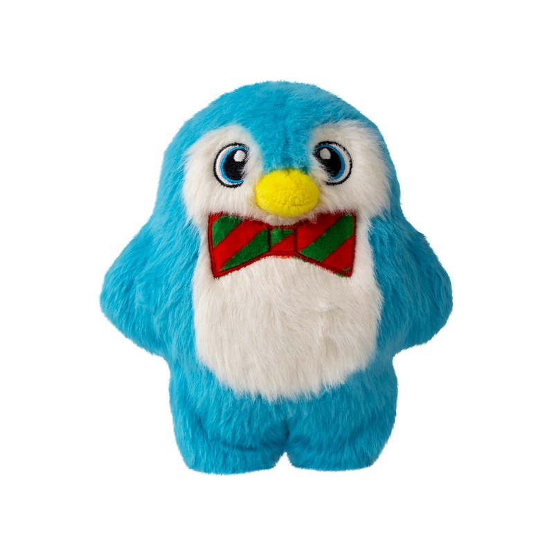 Sametově hebký plyšový tučňák KONG Holiday Snuzzles Penguin s motýlkem ve vánočních barvách láká psa nejen k mazlení, ale i k divočejším hrátkám díky odolnému pískacímu polštářku, který vyplňuje celé jeho tělo. Jemný plyš a zploštělý tvar dělají z kousání a nošení této hračky v tlamě skutečný požitek.