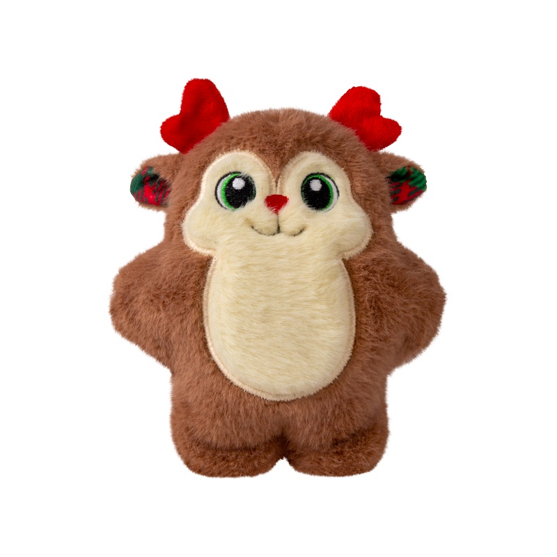 Sametově hebký plyšový sob KONG Holiday Snuzzles Reindeer láká nejen k mazlení, ale i k divočejším hrátkám díky odolnému pískacímu polštářku, který vyplňuje celé jeho tělo. Jemný plyš a zploštělý tvar dělají z kousání a nošení této hračky v tlamě skutečný požitek.