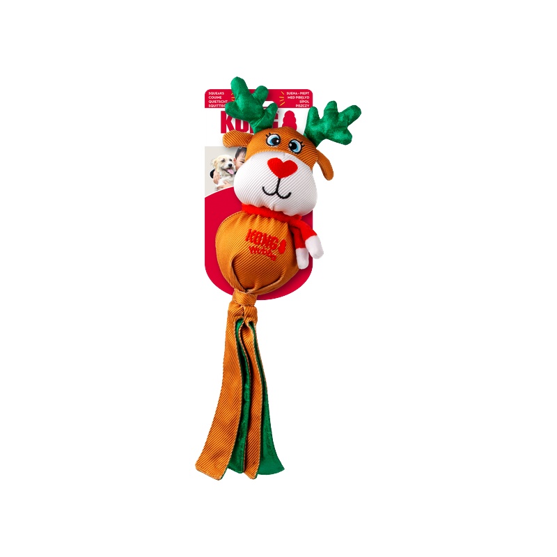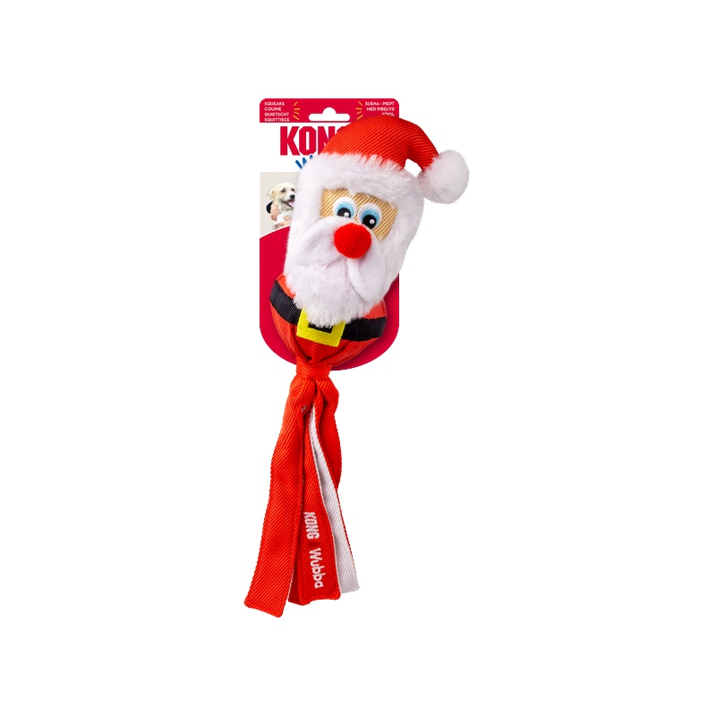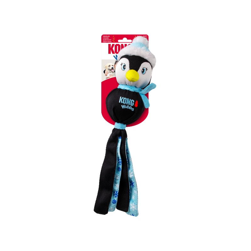 Hračka KONG Holiday Wubba v podobě soba, tučňáka nebo Santy s dlouhým plandavým ohonem dělá aportování, přetahování i lomcování o tolik zábavnější! Vzrušení ze hry ještě zvyšují různorodé textury a pískátko zabudované v hlavě hračky.