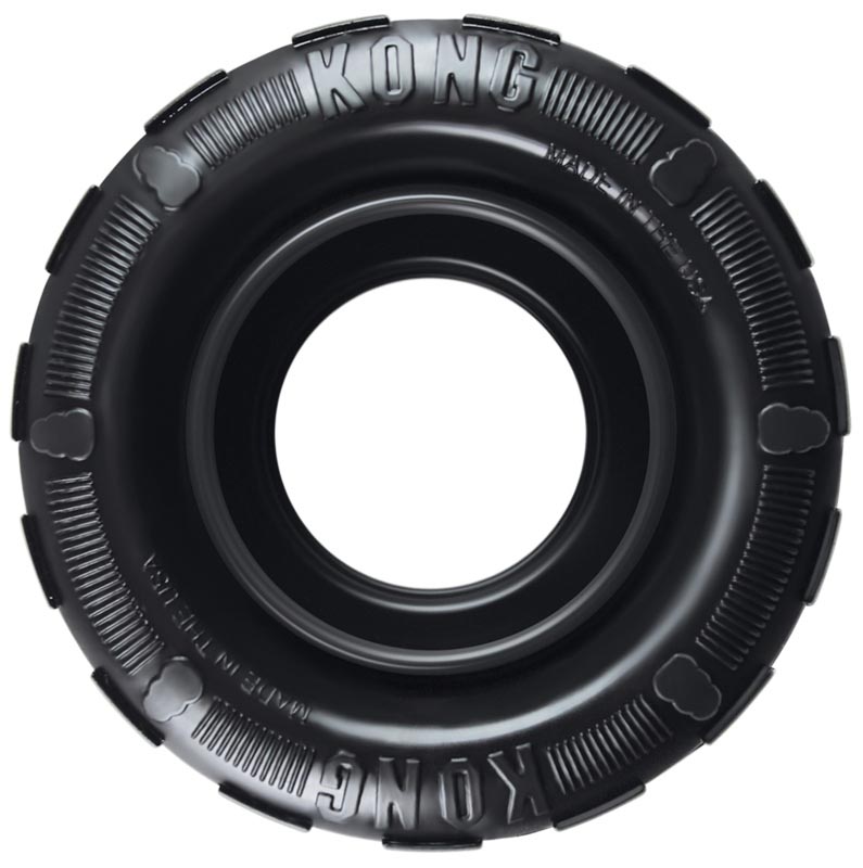 Hračka KONG Tires Pneumatika je hračka pro psy ze speciální odolné gumy. Je vyrobena z ultra elastického materiálu (čistě přírodního kaučuku), pomáhá čistit chrup a masírovat dásně. Speciální tvar zajišťuje při dopadu nepravidelný odraz. Hračku lze plnit pamlsky nebo pastou a zvýšit tak zájem psa o hračku.