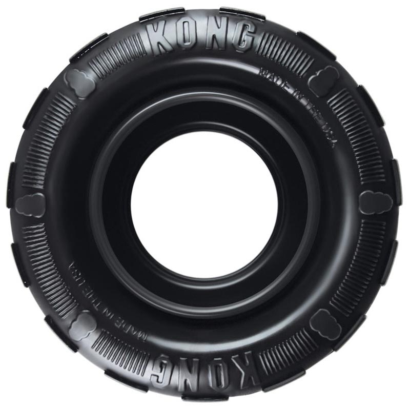 Hračka KONG Tires Pneumatika je hračka pro psy ze speciální odolné gumy. Je vyrobena z ultra elastického materiálu (čistě přírodního kaučuku), pomáhá čistit chrup a masírovat dásně. Speciální tvar zajišťuje při dopadu nepravidelný odraz. Hračku lze plnit pamlsky nebo pastou a zvýšit tak zájem psa o hračku.