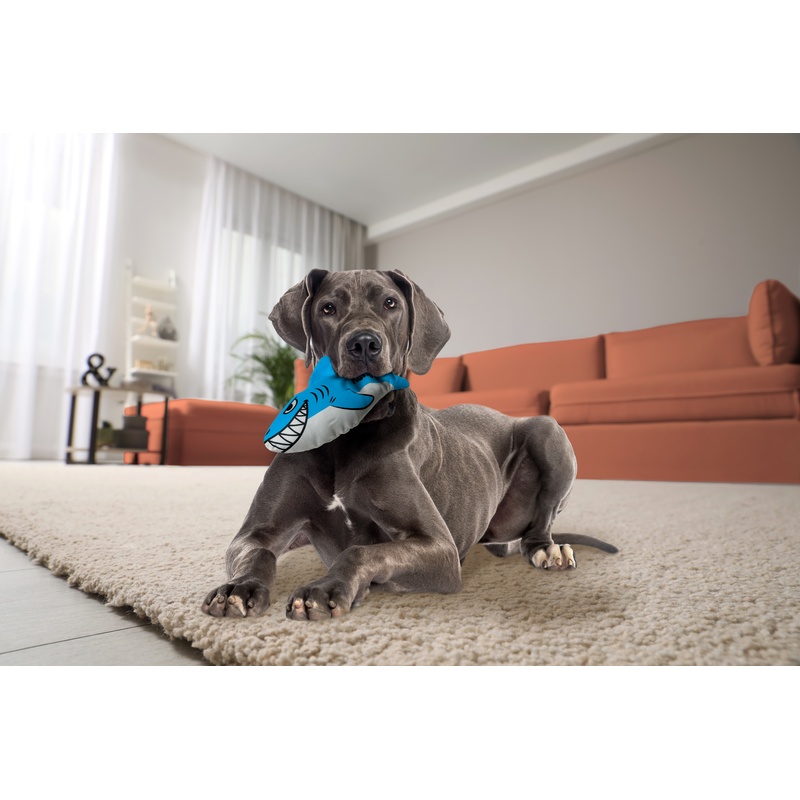 Hračka KONG MAXX Friends Shark pro psy je extrémně odolná a zároveň neodolatelně roztomilá. Je do posledního detailu navržená tak, aby snesla i ty nejdivočejší hrátky. Materiál, který je až pětkrát odolnější vůči protržení než běžný plyš, zaručuje dlouhotrvající zábavu. Dvě vrstvy tkaniny a pevné švy šité supersilnou nití poskytují mimořádnou pevnost i při intenzivní hře. Zabudované pískátko udržuje pozornost psa a motivuje ke hře. Plyšový žralok je ideální jak pro venkovní aportování, tak pro vnitřní dovádění.