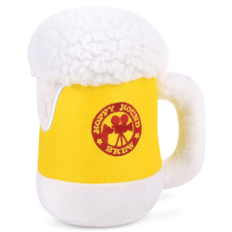Textilní hračka pro psy ve tvaru piva.