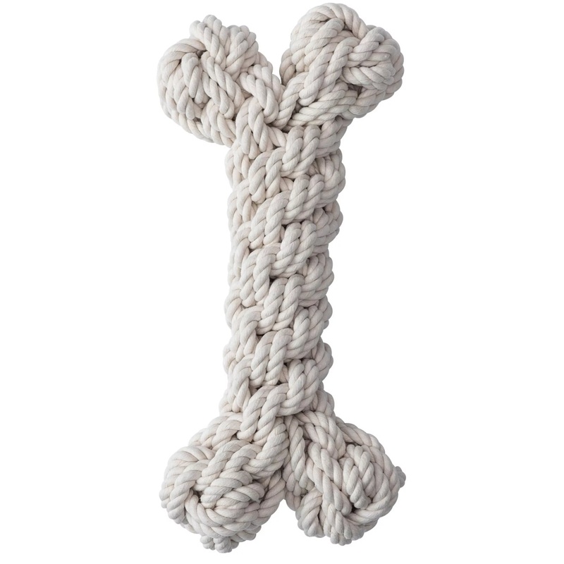 Extra velké bavlněné přetahovadlo pro psy velkých plemen ve tvaru kosti je spletené z pevných přírodních provázků. Hodí se pro přetahování, aportování i kousání. Bavlněné provázky během hry přirozeně čistí chrup a přispívají tak ke zdraví zubů a dásní.