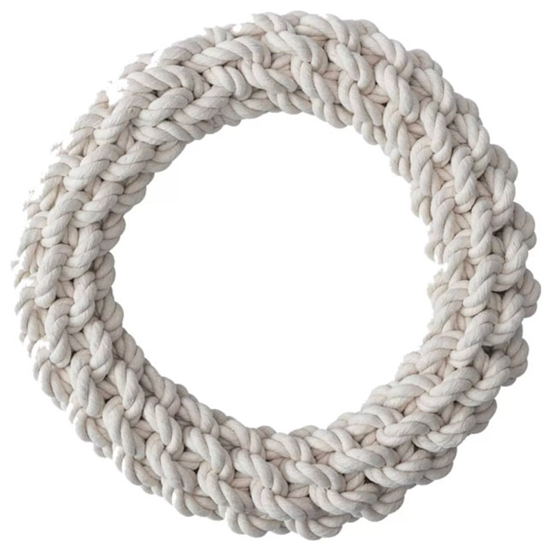 Bavlněné přetahovadlo pro psy ve tvaru kruhu je spletené z pevných přírodních provázků. Hodí se na přetahování, aportování i kousání. Během hry přirozeně čistí chrup a přispívá ke zdraví zubů a dásní.