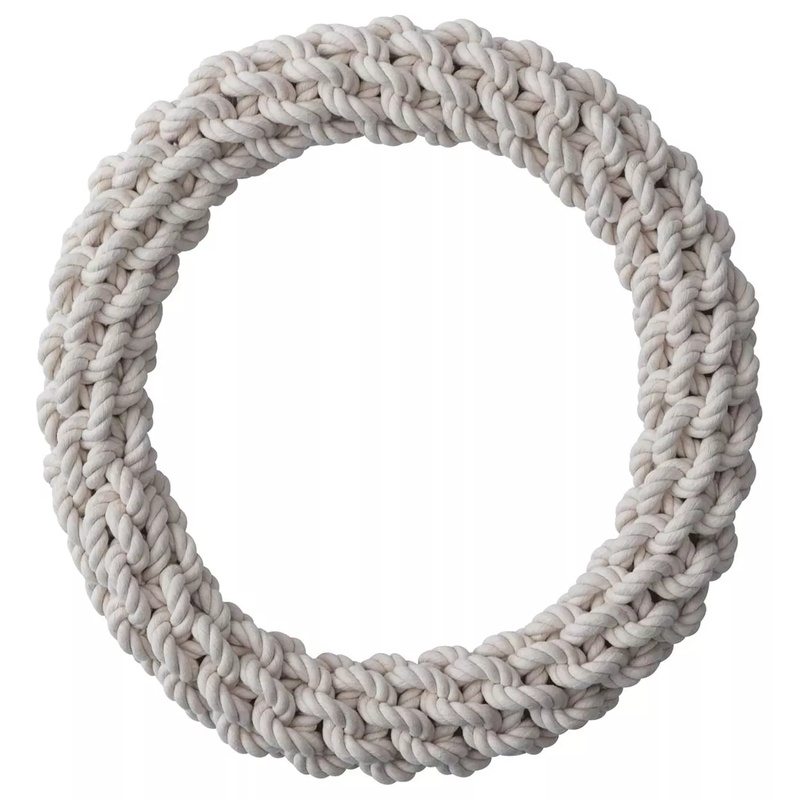 Velké bavlněné přetahovadlo pro psy velkých plemen ve tvaru kruhu je spletené z pevných přírodních provázků. Hodí se na přetahování, aportování i kousání. Během hry přirozeně čistí chrup a přispívá ke zdraví zubů a dásní.