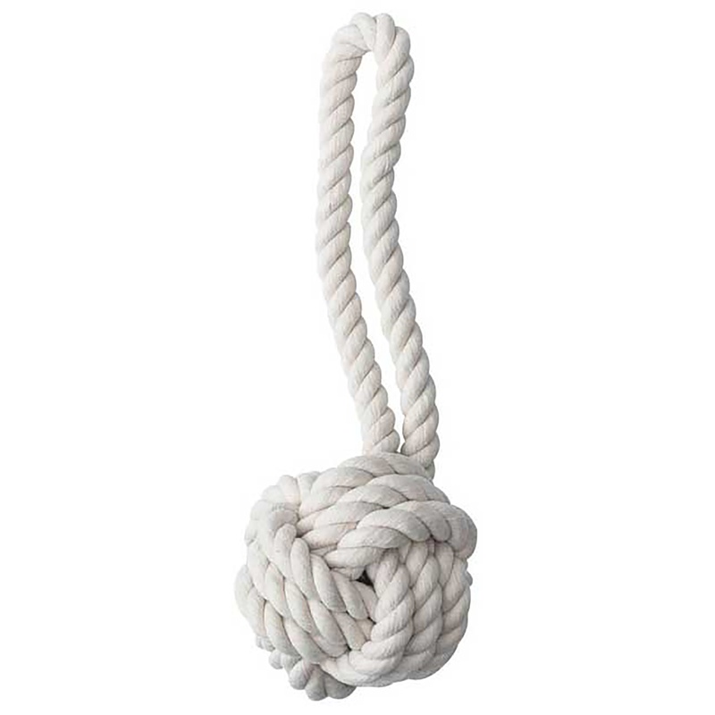 Bavlněné přetahovadlo pro psy spletené z pevných přírodních provázků do tvaru míče je zakončené okem pro lepší úchop při hře. Hodí se pro přetahování, aportování i kousání. Bavlněné provázky během hry přirozeně čistí chrup a přispívají tak ke zdraví zubů a dásní.