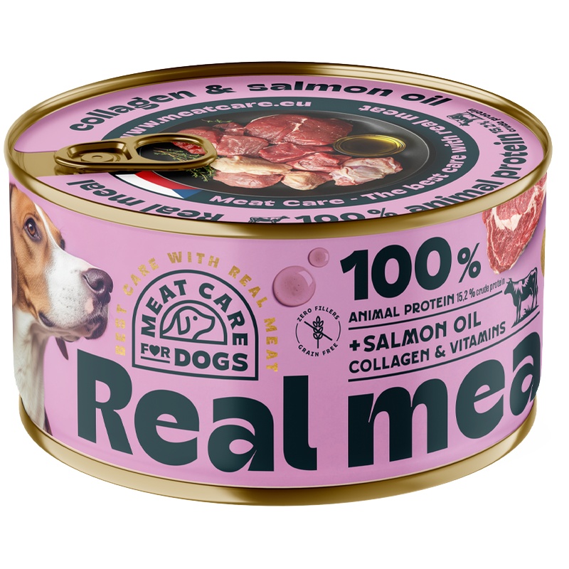 Kompletní konzerva se 100% podílem živočišných bílkovin pro dospělé psy vyniká vysokou chutností a lákavou vůní díky maximální čerstvosti masa. Jablečná vláknina a tymián podporují zdraví trávicího traktu, kolagen pomáhá udržet zdravé klouby a kosti a lososový olej podporuje zdraví kůže a lesk srsti. Širší konzerva navíc usnadňuje podávání.