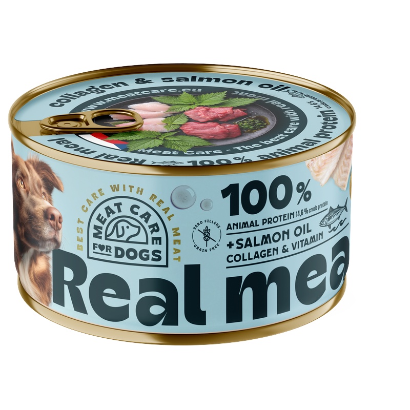 Kompletní konzerva se 100% podílem živočišných bílkovin pro dospělé psy vyniká vysokou chutností a lákavou vůní díky maximální čerstvosti masa. Jablečná vláknina podporuje zdraví trávicího traktu, kopřiva působí proti alergiím a ekzémům, kolagen pomáhá udržet zdravé klouby a kosti a lososový olej podporuje zdraví kůže a lesk srsti. Širší konzerva navíc usnadňuje podávání.