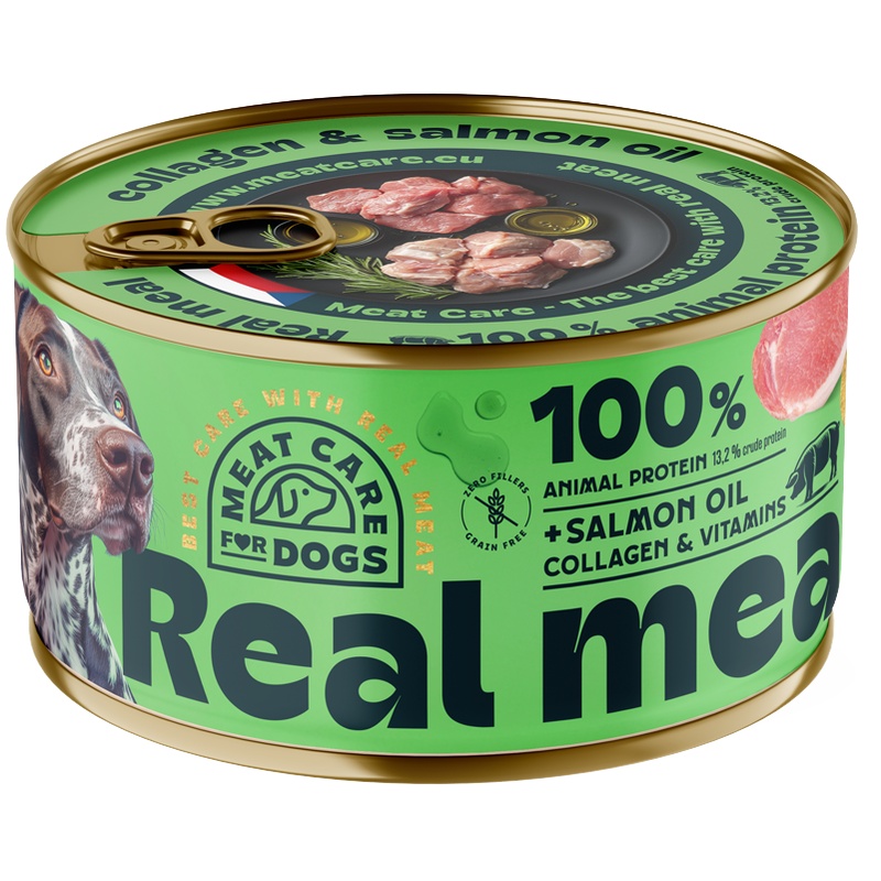 Kompletní konzerva se 100% podílem živočišných bílkovin pro dospělé psy vyniká vysokou chutností a lákavou vůní díky maximální čerstvosti masa. Jablečná vláknina podporuje zdraví trávicího traktu a rozmarýn zdraví srdce, kolagen pomáhá udržet zdravé klouby a kosti a lososový olej podporuje zdraví kůže a lesk srsti. Širší konzerva navíc usnadňuje podávání.