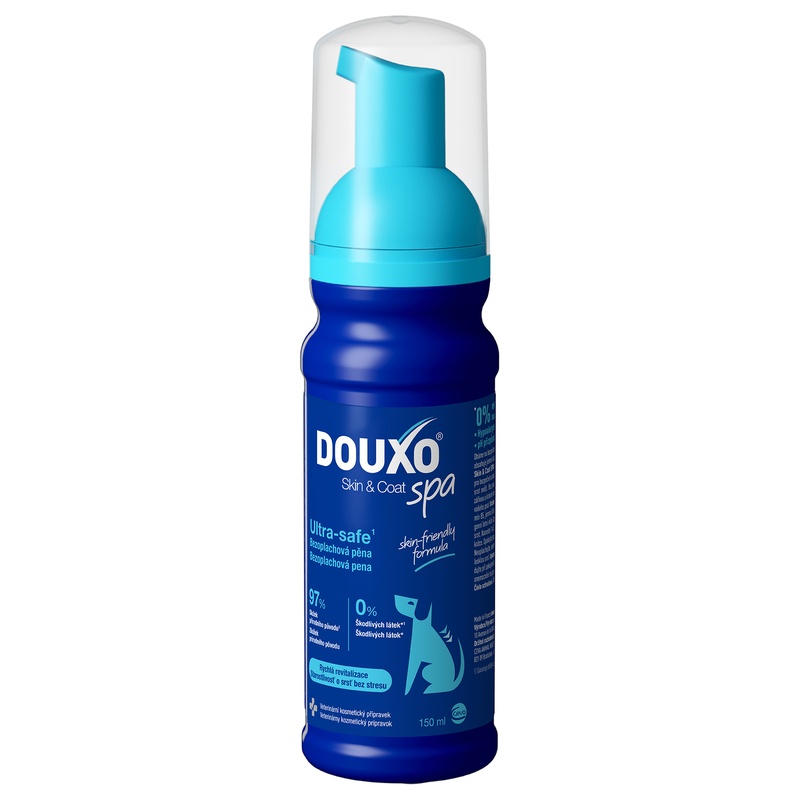 Bezoplachová pěna Douxo Skin & Coat SPA je veterinární kosmetický přípravek pro psy vyvinutý pro bezpečné a snadné čištění srsti bez použití vody. Pomůže vám udržet psa čistého a jeho srst svěží, jemnou, zářivě lesklou a příjemně voňavou.