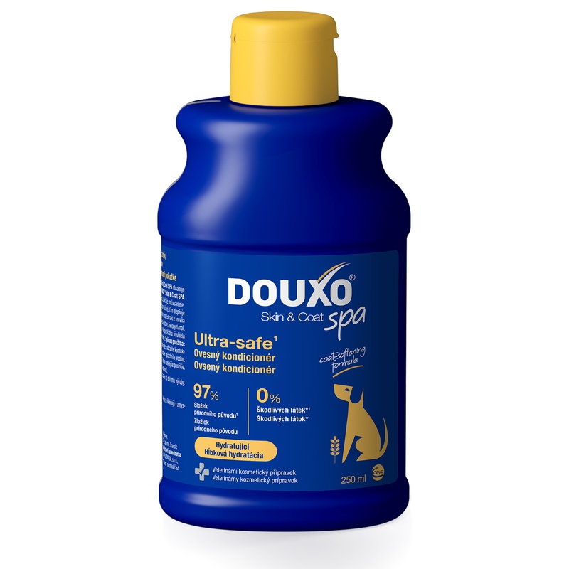 Ovesný kondicionér Douxo Skin & Coat SPA pro psy je veterinární kosmetický přípravek, který hydratuje pokožku, oživuje srst a usnadňuje její rozčesávání. Unikátní složení zanechává srst psa jemnou, hedvábnou, nadýchanou, zářivě lesklou a příjemně voňavou.